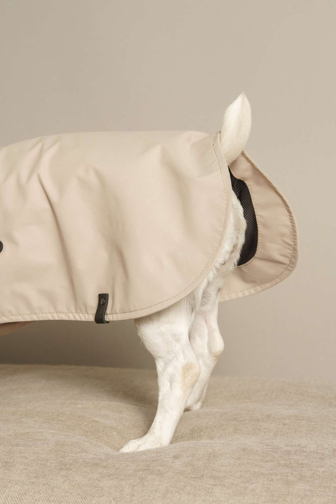 Предусмотрено отверстие для крепления поводка к ошейнику. После прогулки достаточно протереть наряд губкой.