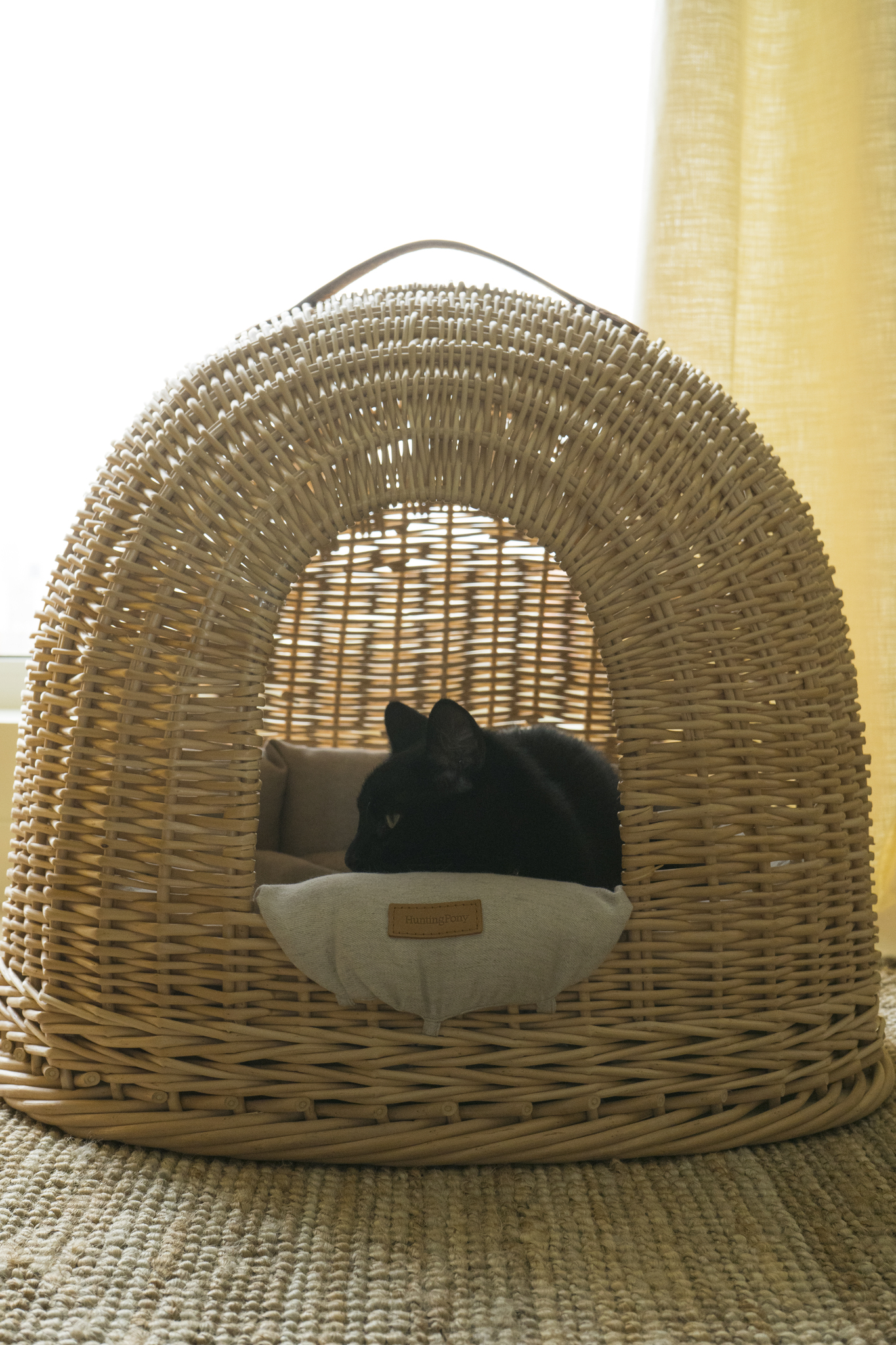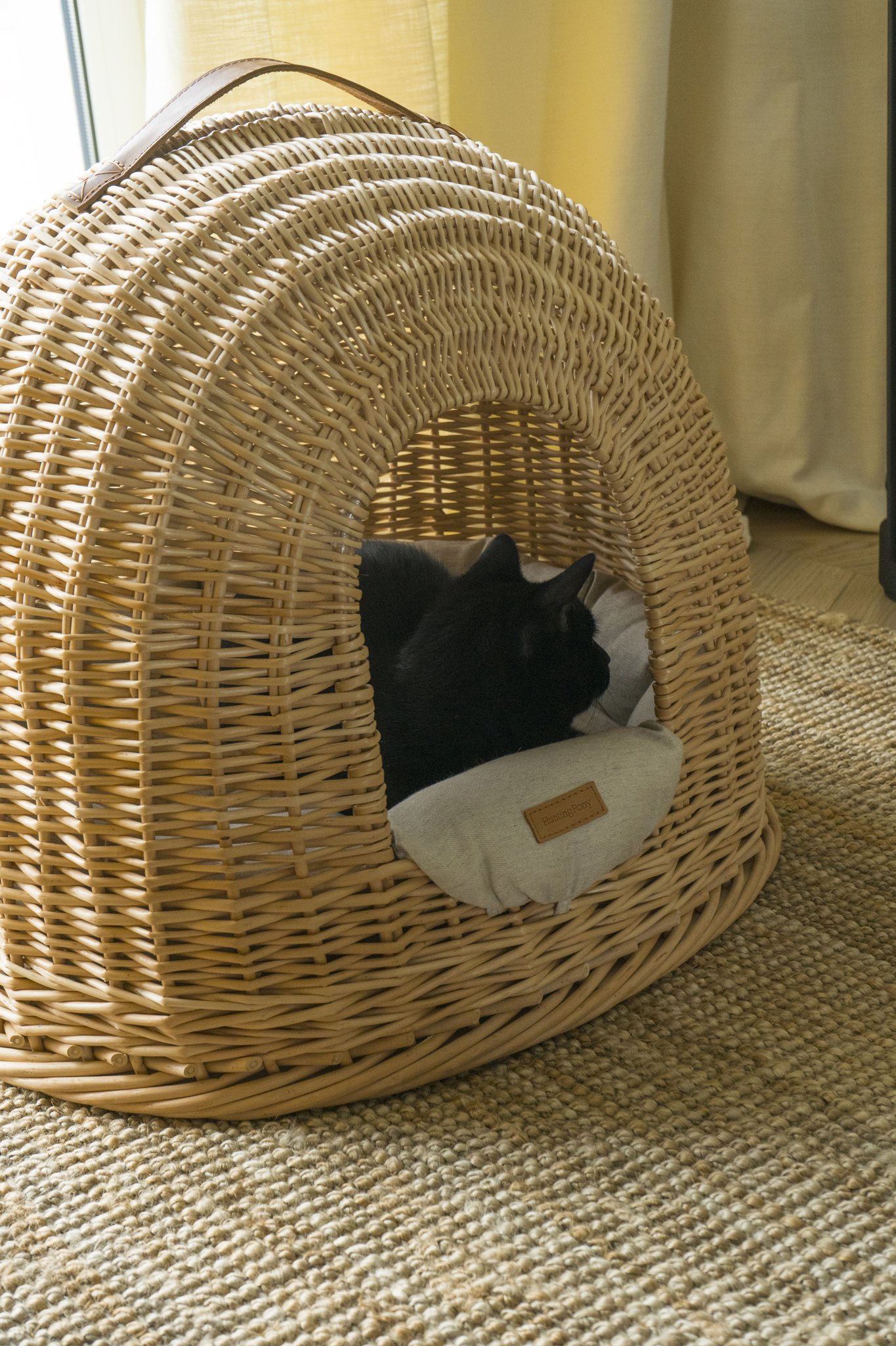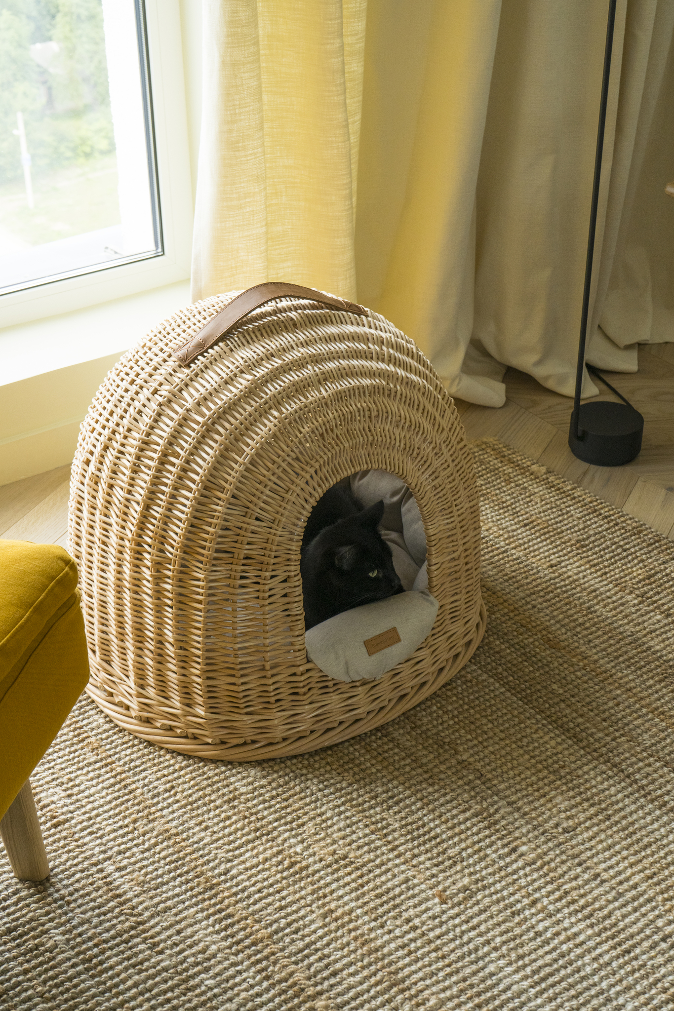 Домик из лозы от Hunting Pony — это настоящие апартаменты с крышей, стенами, а ещё мягенькой подушечкой изо льна внутри. Островок безопасности и уюта для вашего носика, где можно спрятаться от фейерверков, шумных соседей или просто городской суеты.