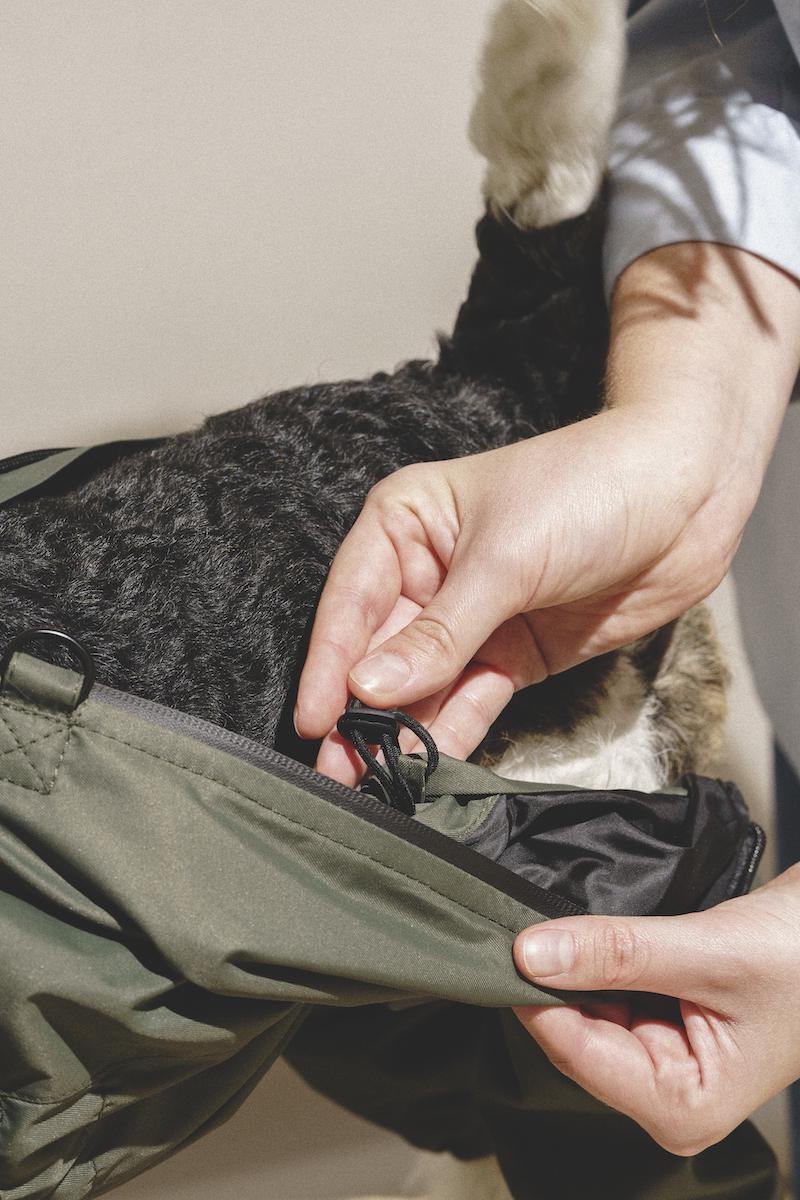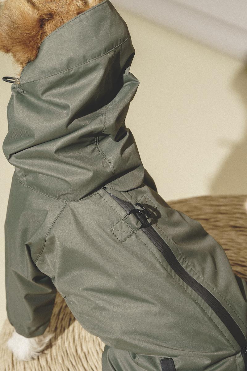 Полностью разъемный комбинезон застегивается в одно движение на водонепроницаемую молнию, под которой прячется планка, чтобы не зацепить шерстку.