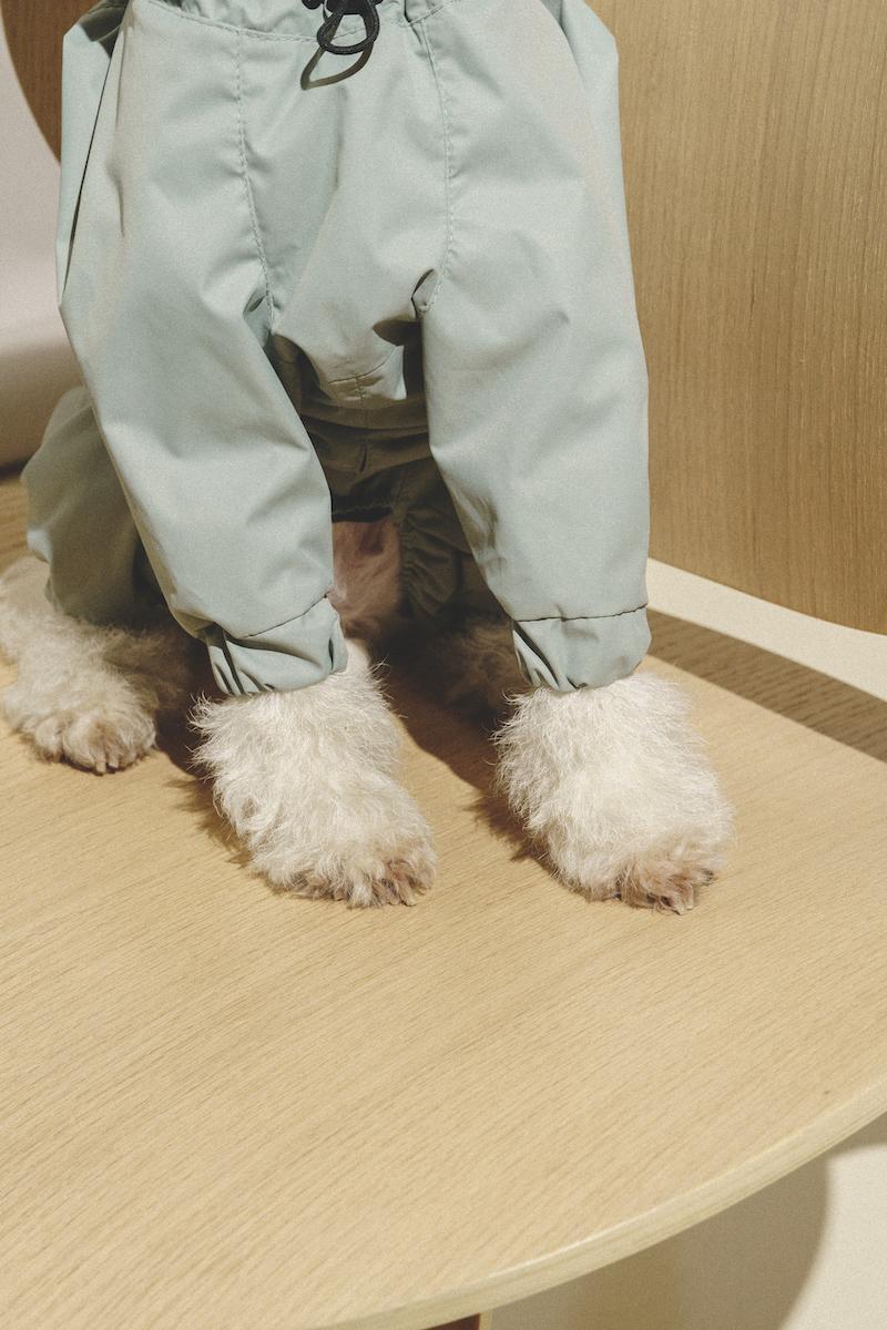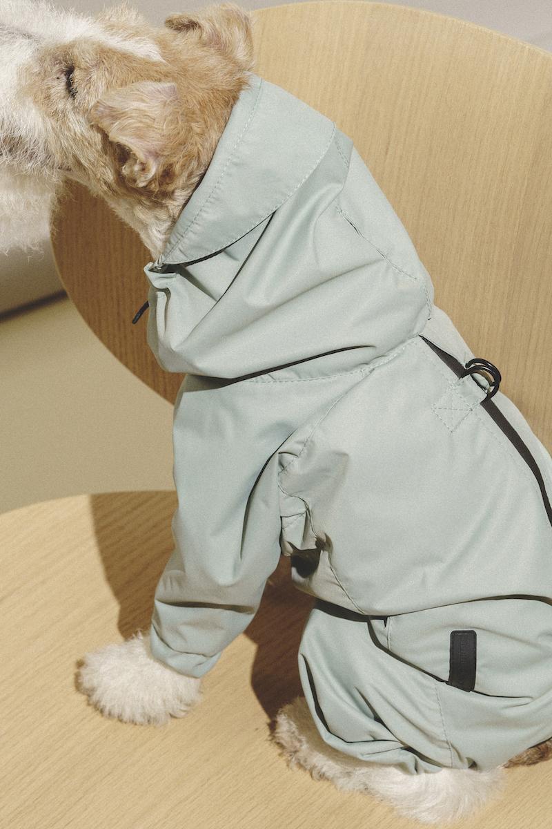 Полностью разъемный комбинезон застегивается в одно движение на водонепроницаемую молнию, под которой прячется планка, чтобы не зацепить шерстку.
