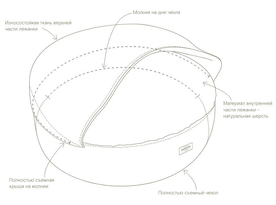 В обновленной версии Пони-Норки мы предусмотрели полностью съемный чехол и верх лежанки.