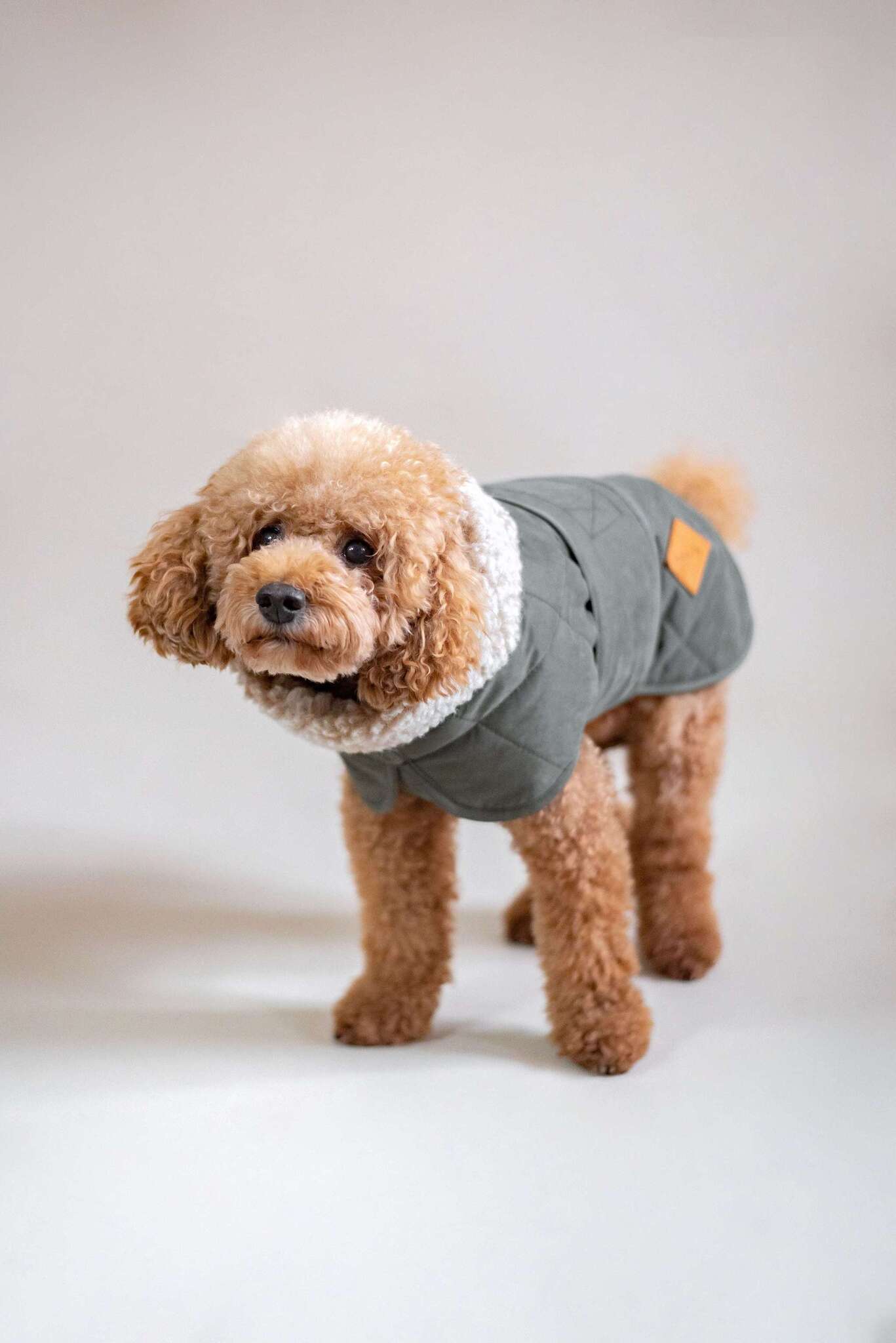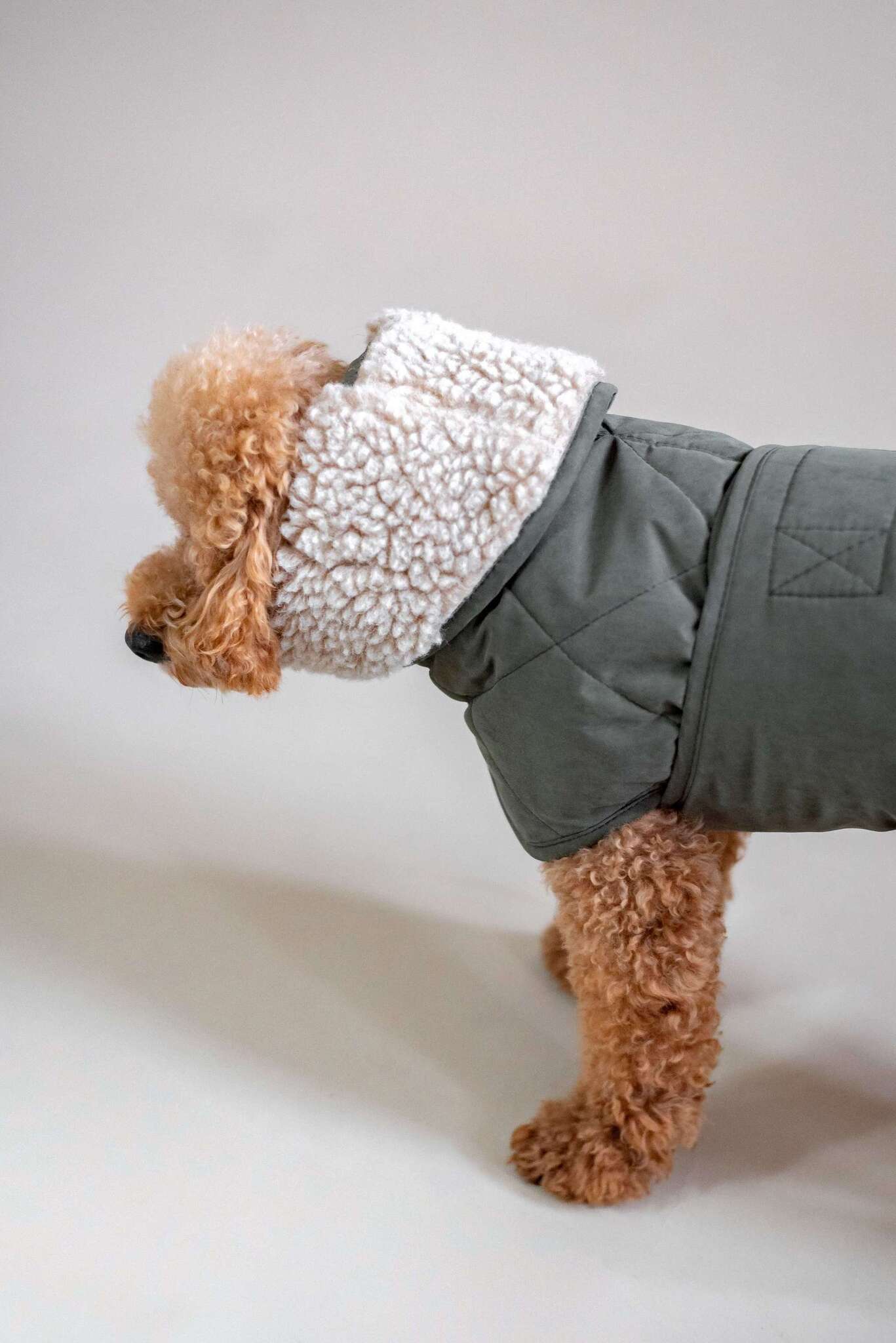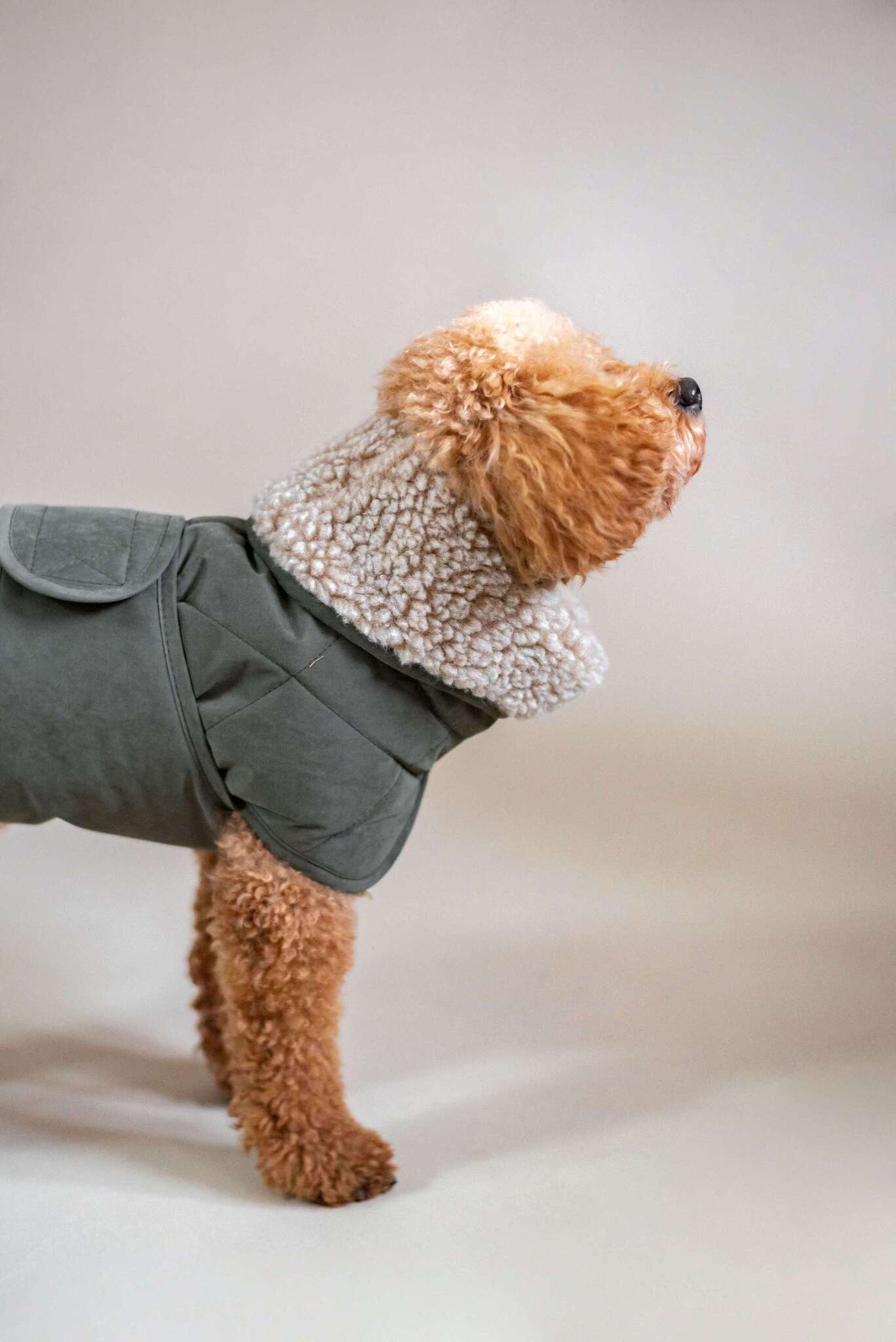 Поясок словно обнимает, укутывает и согревает, закрывая грудку и животик. Воротник можно поднять, чтобы ушкам стало ещё теплее.