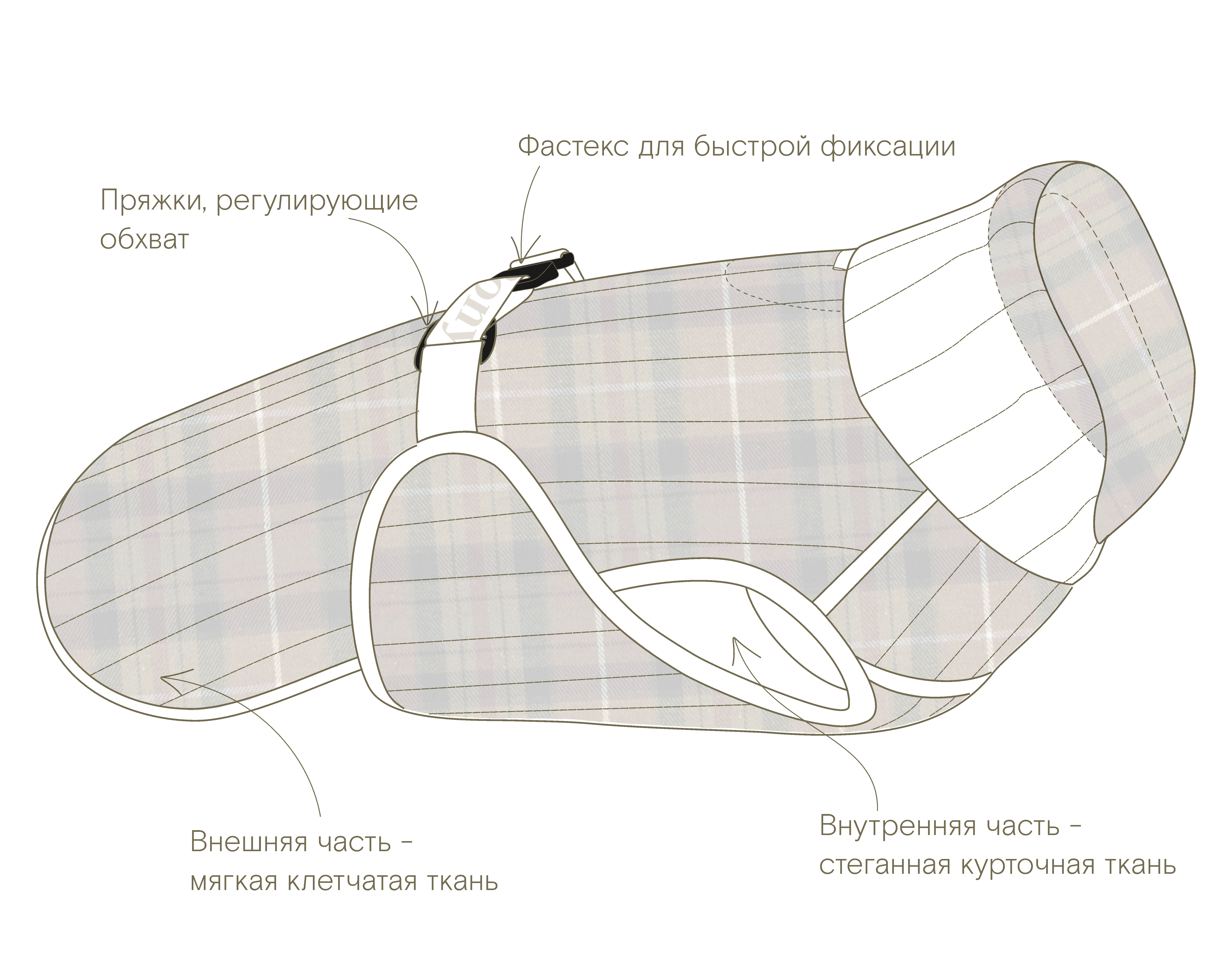 Одна сторона попоны выполнена из курточной ткани с водоотталкивающей пропиткой.