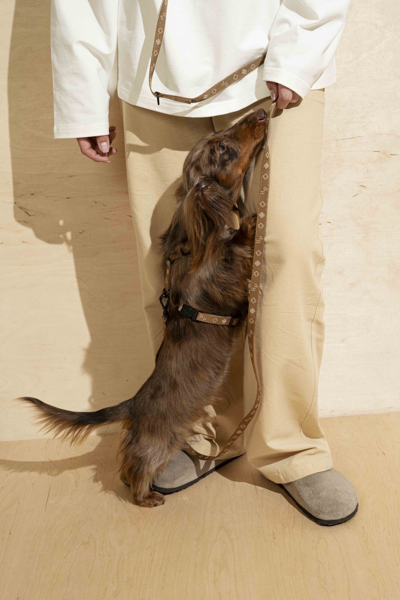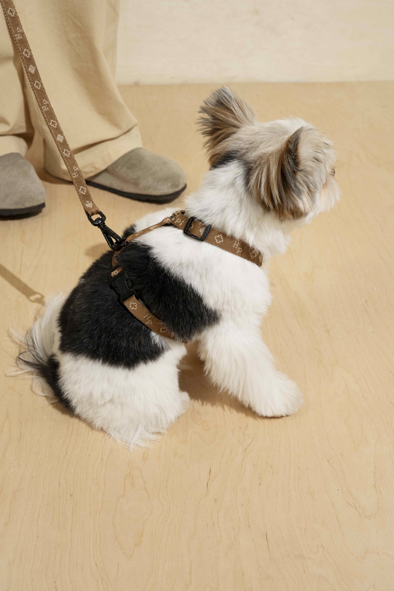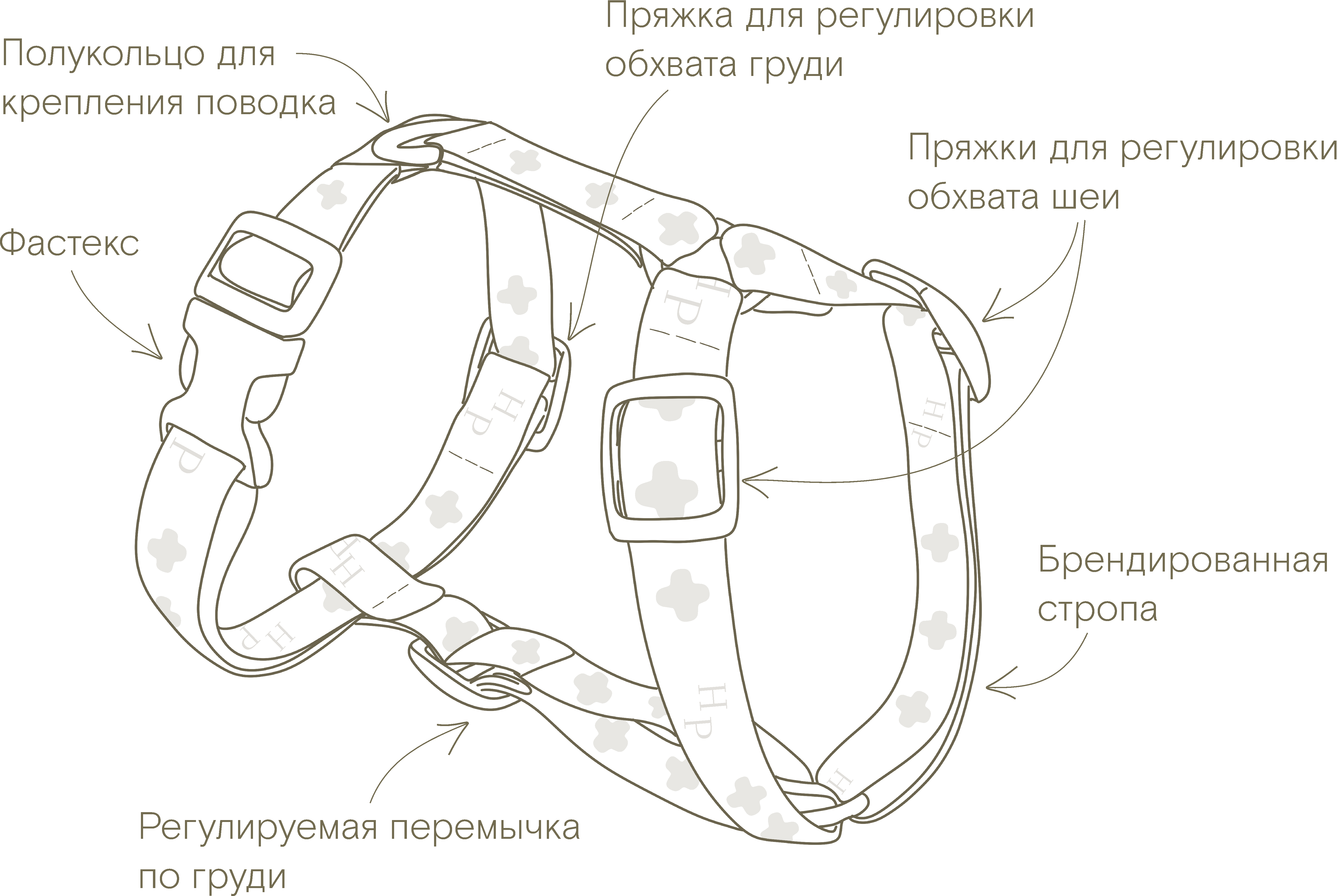 Шлейка выполнена из брендированной синтетической стропы, которая не боится внешнего воздействия и устойчива к любой погоде.