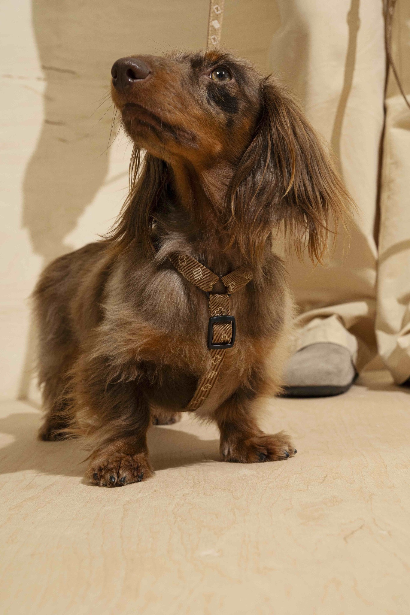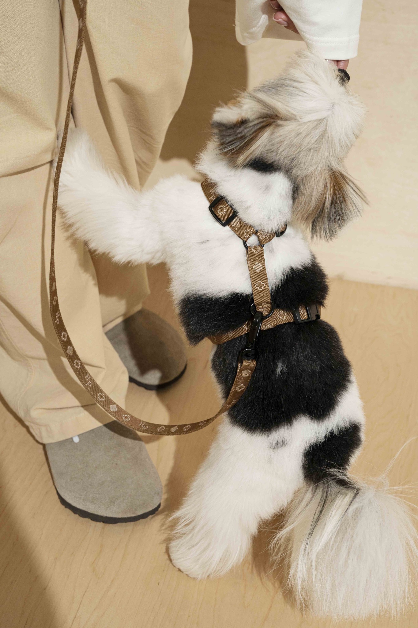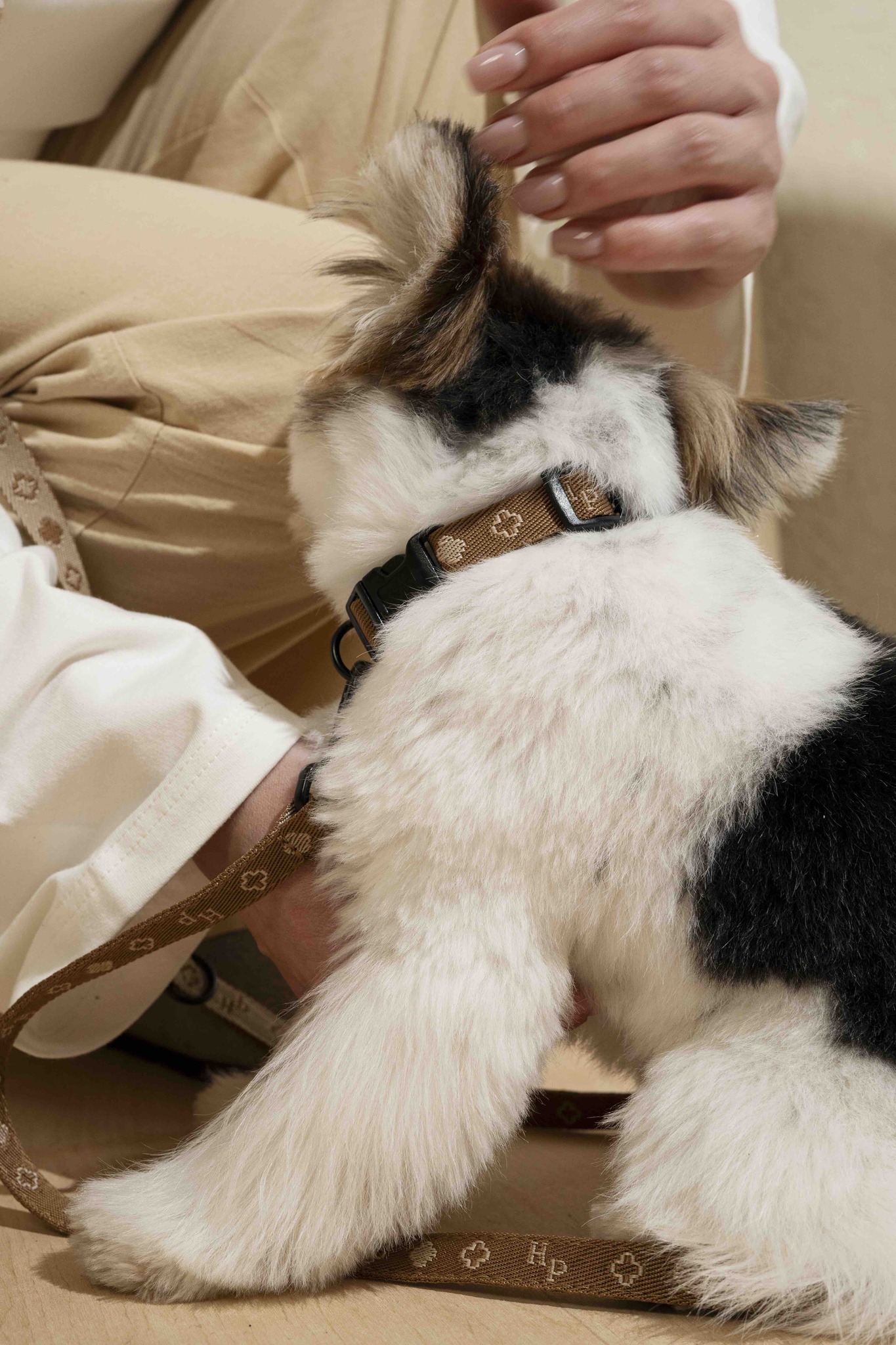 Шлейка выполнена из брендированной синтетической стропы, которая не боится внешнего воздействия и устойчива к любой погоде.