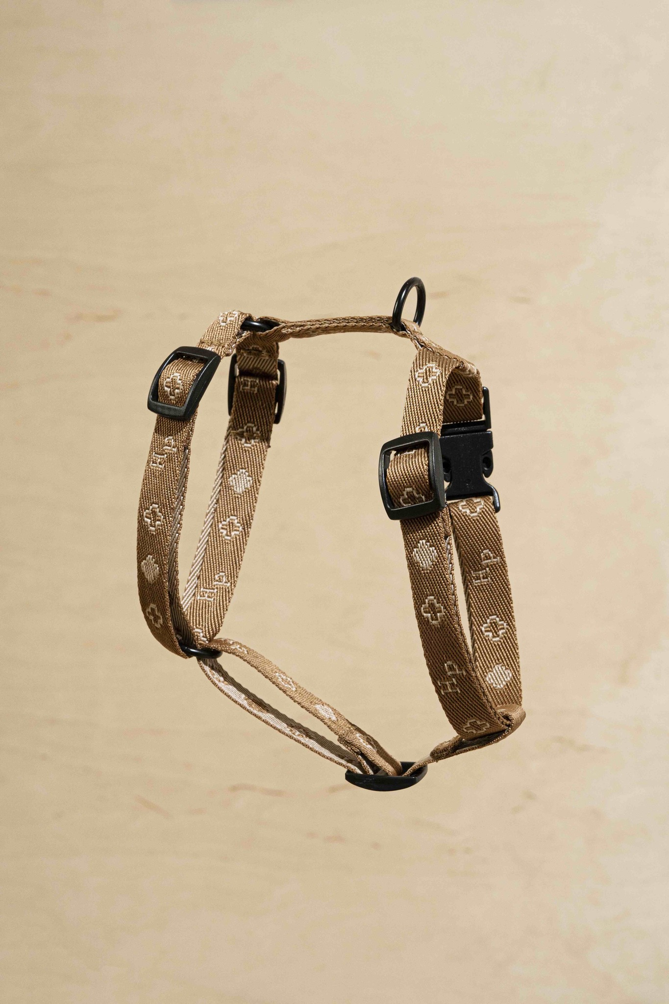 В шлейке используется пластиковая фурнитура, чтобы шлейка оставалась легкой и не давила.