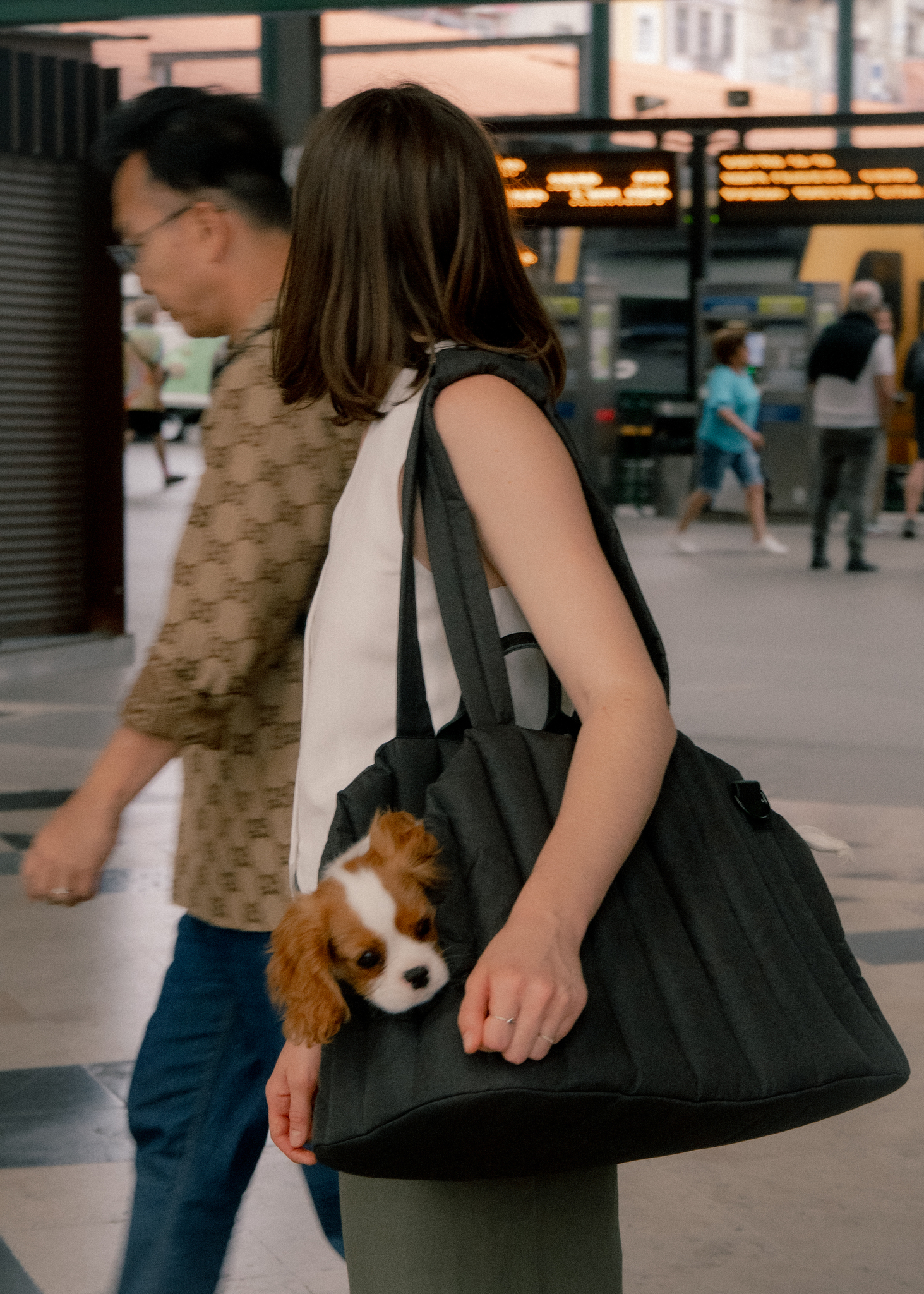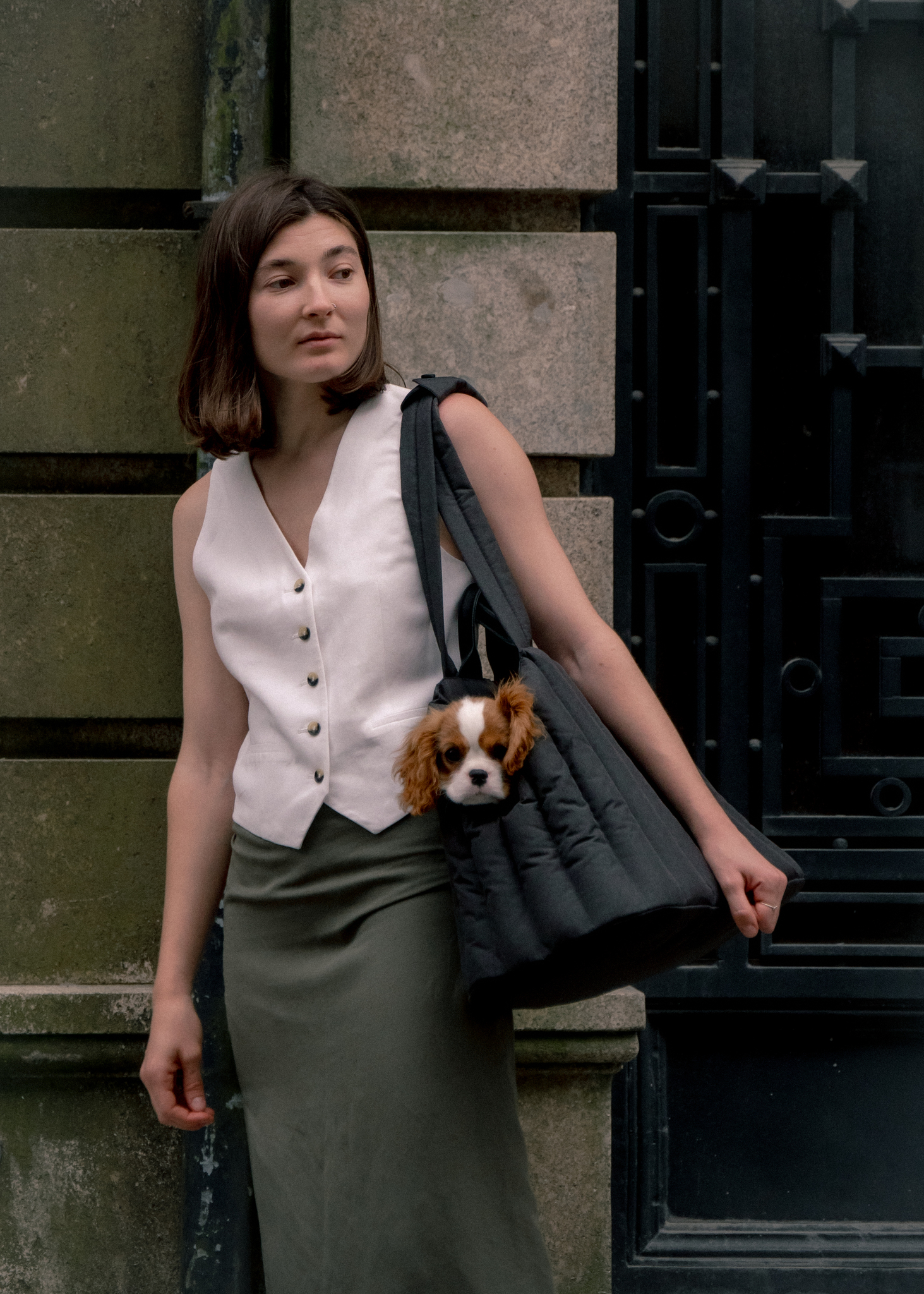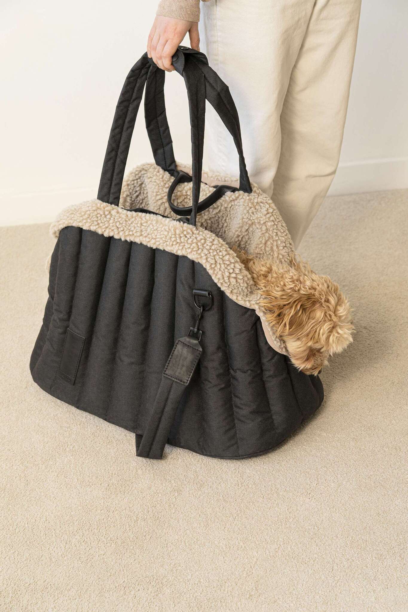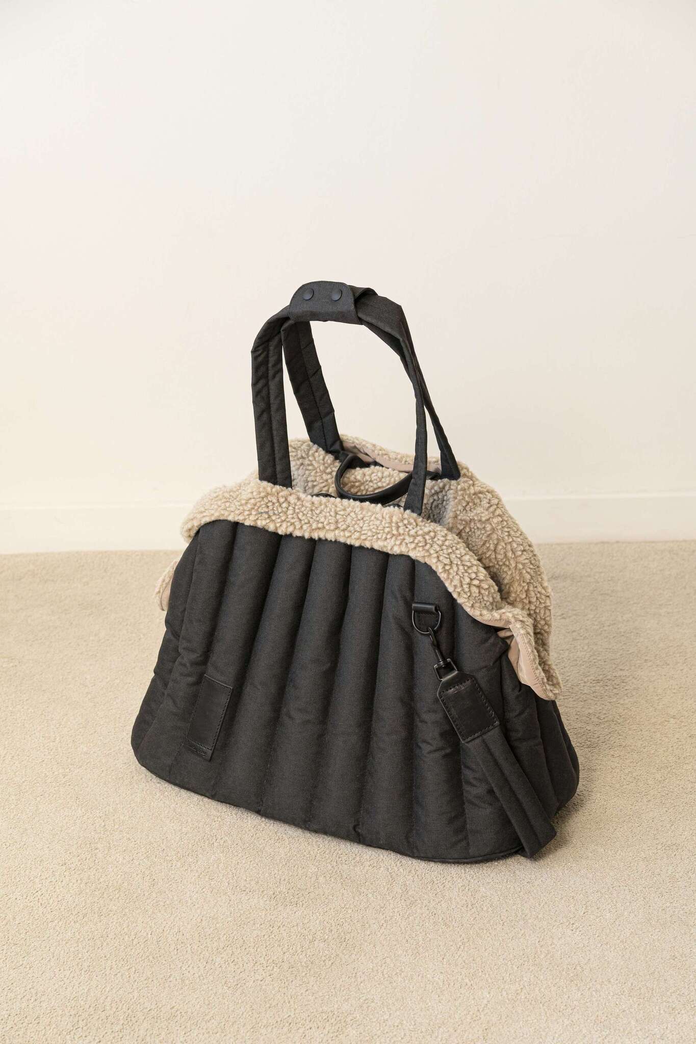 Мы сделали прогулочную сумку открытой, чтобы собачки разного роста чувствовали себя в ней не зажато. Чтобы вы могли прийти с питомцем в кафе, поставить сумку и хвостик видел вас. На углубления сбоку удобно положить головку. К тому же при такой форме удобно запрыгнуть в сумку. Нет ощущения закрытого пространство, что может пугать.